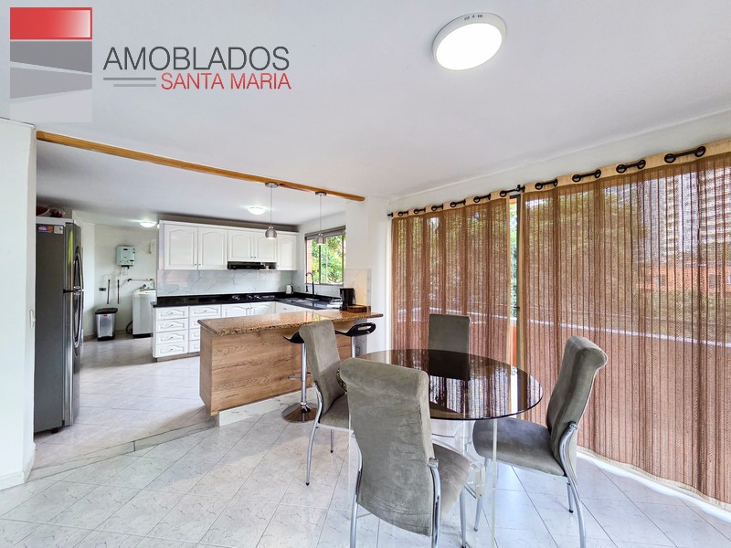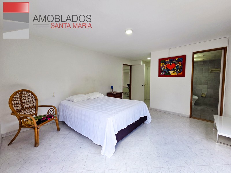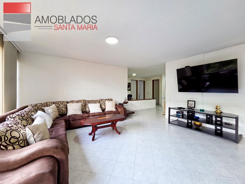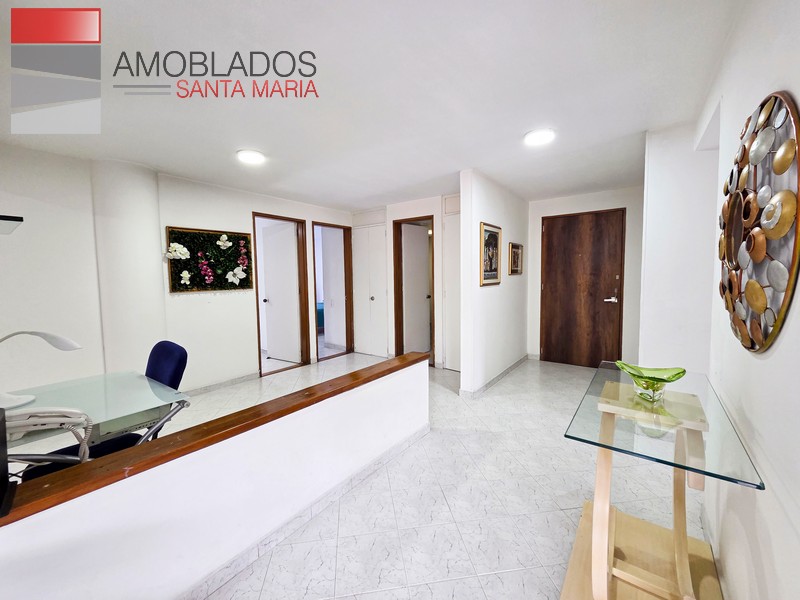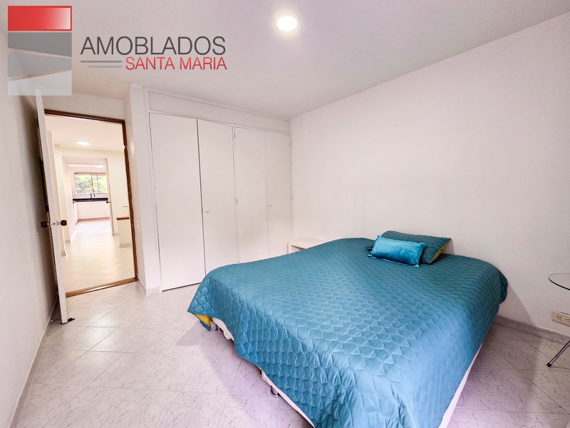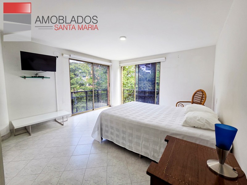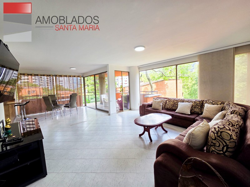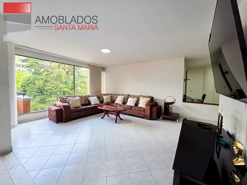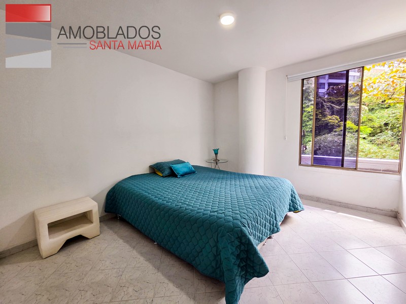 Simple lines and soft tones decorate the interior of this bright furnished apartment in El Poblado, Golden Mile, offering comfort and beauty. An ideal space for a family.